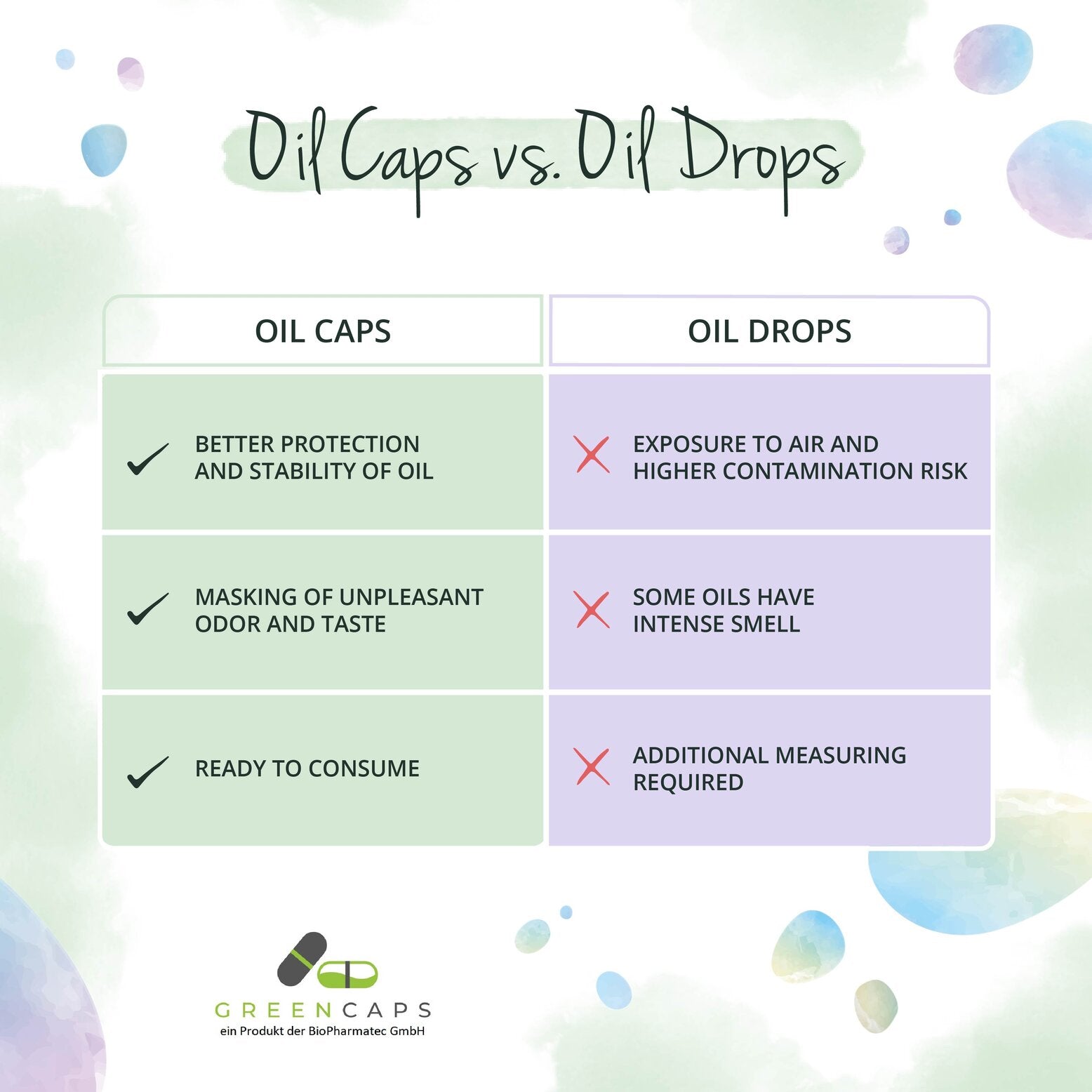 - In vegan, leakproof and easy-to-swallow Green Caps