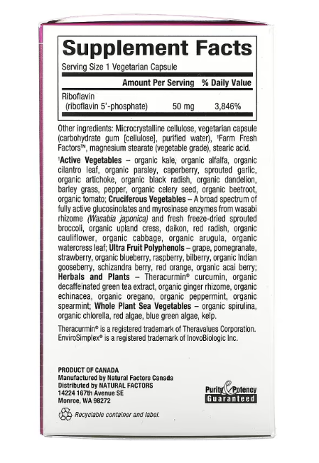 This product contains riboflavin 5′-phosphate, the coenzyme form of vitamin B2. Riboflavin 5′-phosphate is included as a supplement ingredient in order to provide vitamin B2 in a bioavailable form.